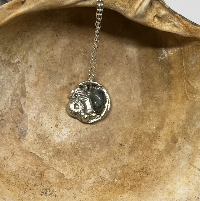 Small sterling silver rock pool pendant with sea glass