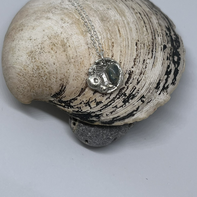 Handmade sterling silver rock pool pendant with sea glass